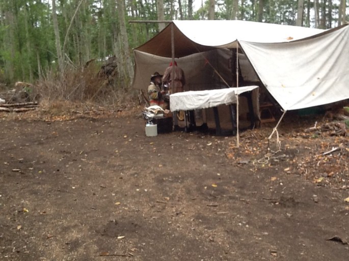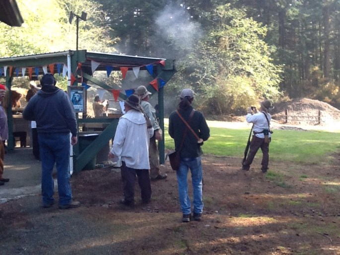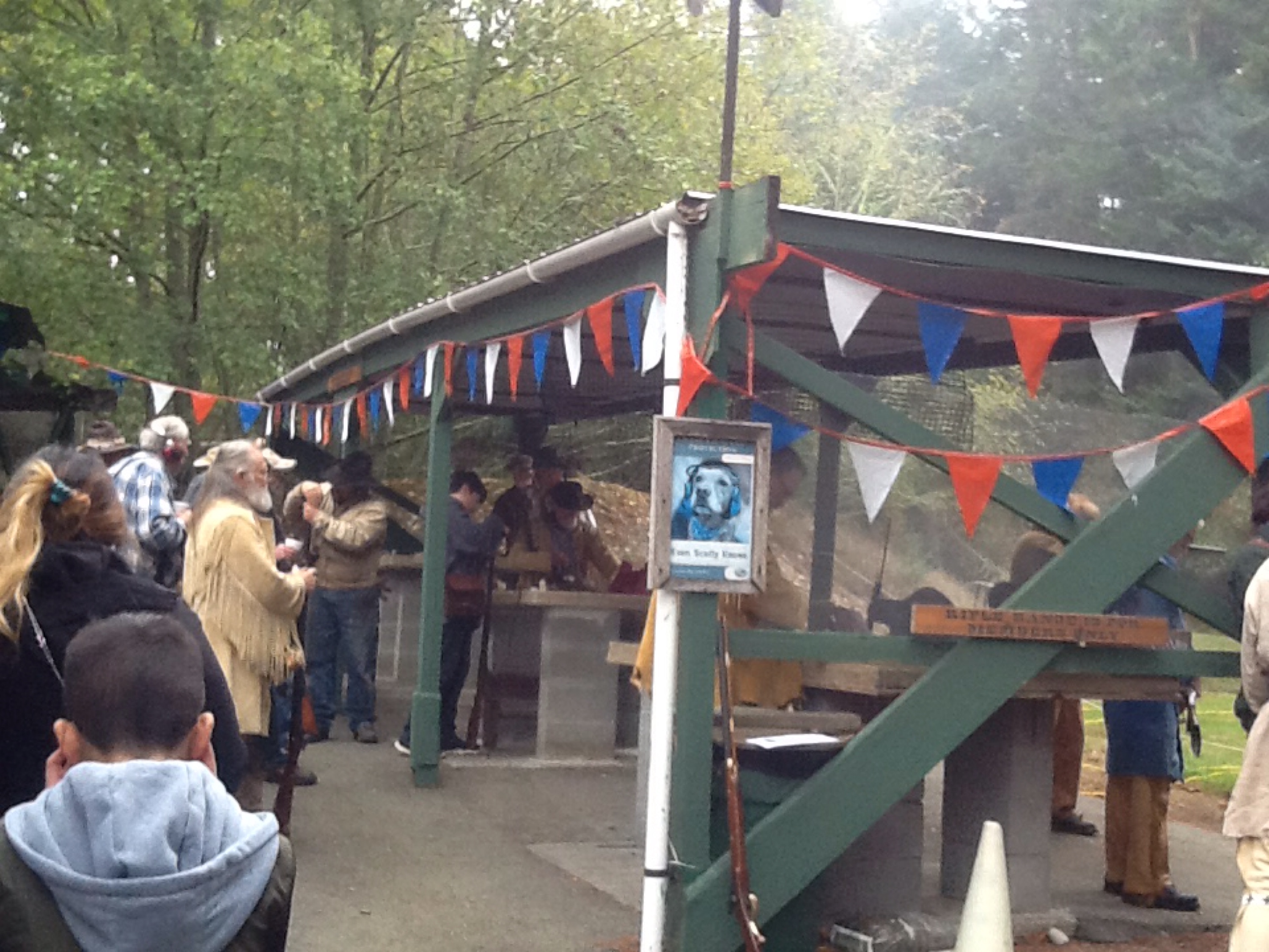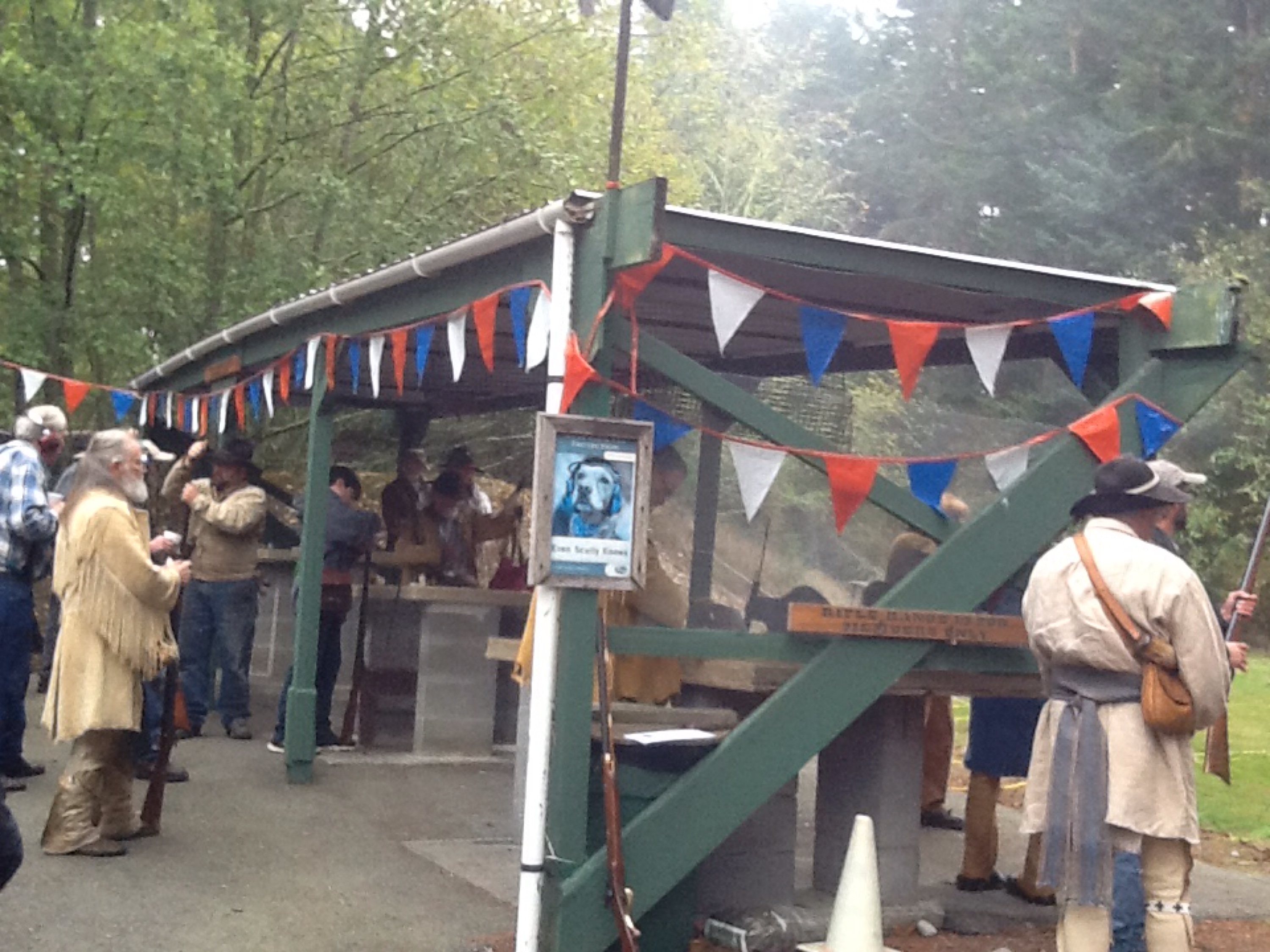 A small group of adventurers opted to test their endurance and made a pilgrimage from Bowman’s Bay , across Deception Pass Bridge and along the hiway wearing their Mountain Man attire on route to the rendezvous site. They carried their muzzleloaders and other items they would have been traveling with in the era they were portraying. They stopped at various points to visit with and answer questions posed by those they encountered on their trek. They offered up a small informational handout with directions to the rendezvous site and an invitation to come a join in the historical festivities. All and all the walk was well received and plans for another were underway before they even reached their destination.