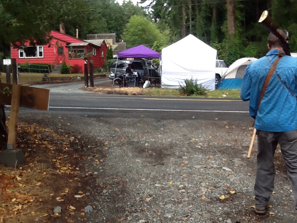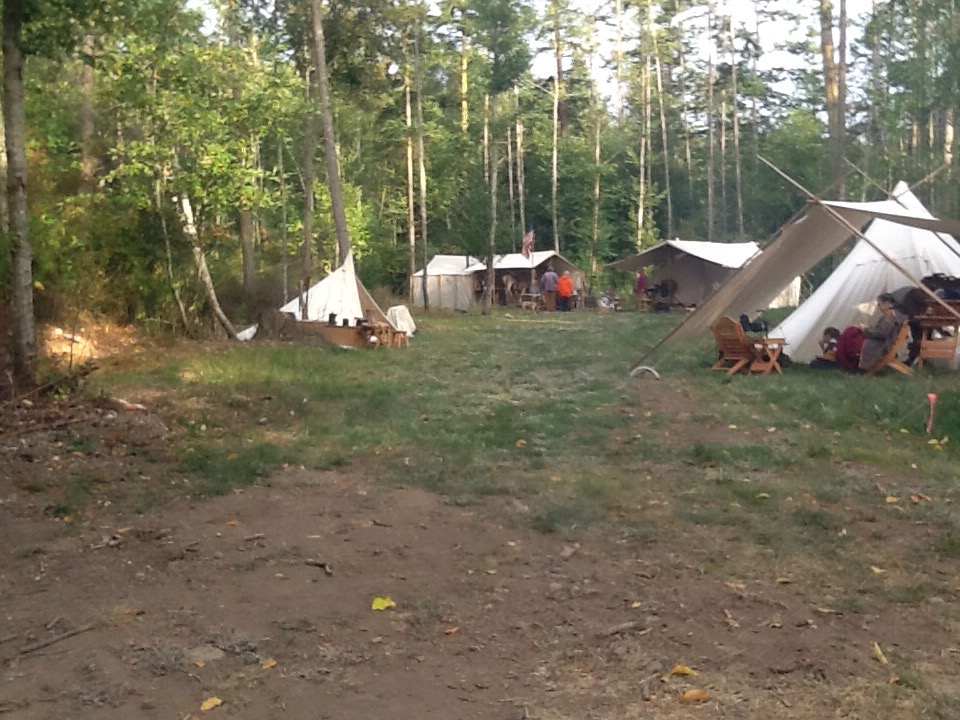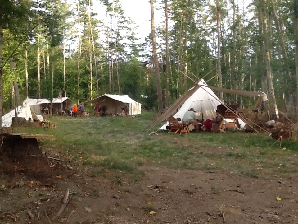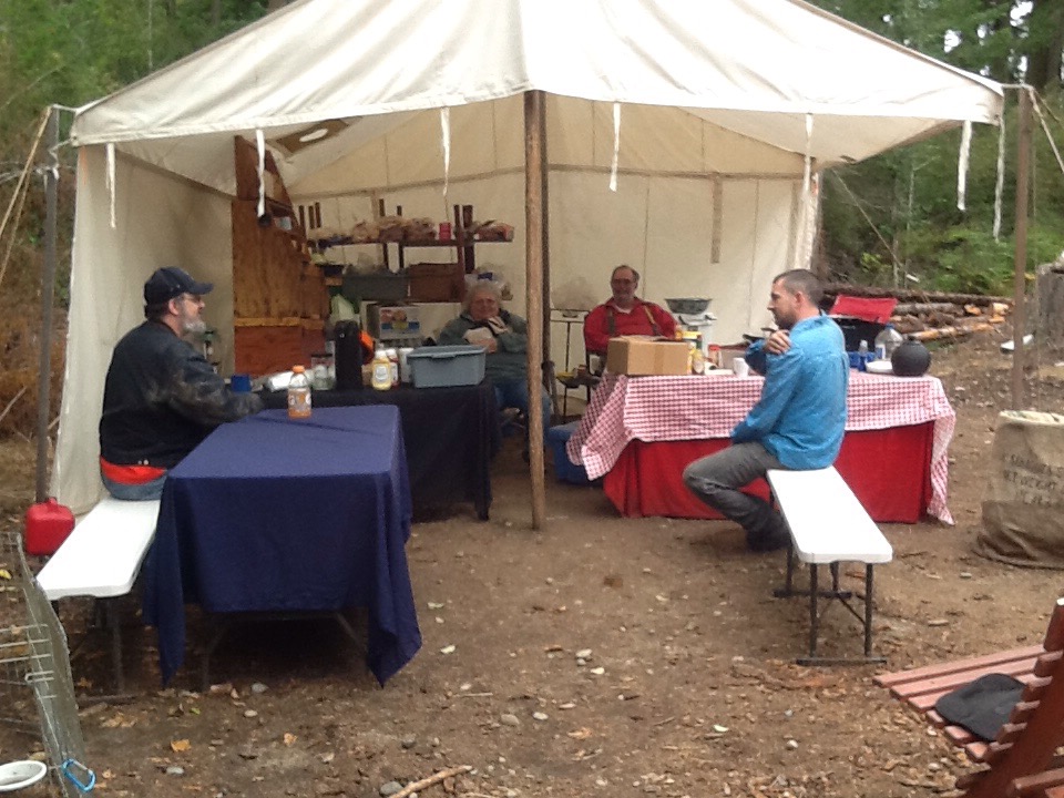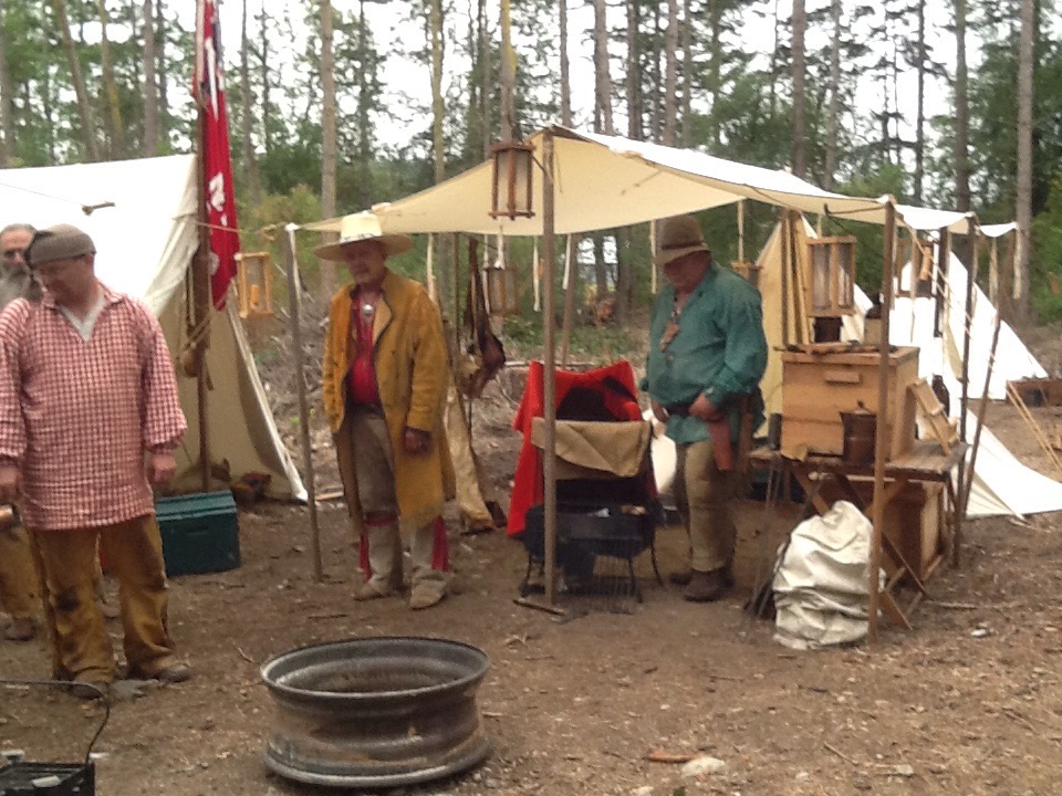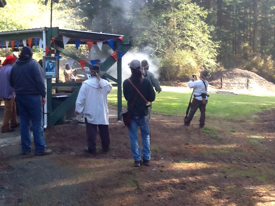 A small group of adventurers opted to test their endurance and made a pilgrimage from Bowman’s Bay , across Deception Pass Bridge and along the hiway wearing their Mountain Man attire on route to the rendezvous site. They carried their muzzleloaders and other items they would have been traveling with in the era they were portraying. They stopped at various points to visit with and answer questions posed by those they encountered on their trek. They offered up a small informational handout with directions to the rendezvous site and an invitation to come a join in the historical festivities. All and all the walk was well received and plans for another were underway before they even reached their destination.