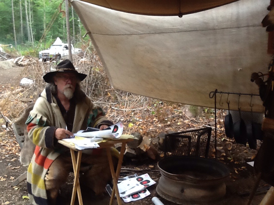 Our rendezvous was a success in many ways. The weather was for the most part cooperative with only sparse rain showers and the temperature was pleasant. The turnout was good with many new attendees who had a chance to get their first taste of a different outdoor activity. They appreciated the historical portray of surroundings as they wandered through the camp viewing various styles of tents and tipis nestled throughout. As is usually the case most were very fascinated. WOW! Was a common reaction by the many who tried their hand at the tomahawk throw with several successfully hitting the target. On the shooting range there were opportunities to learn to properly load and fire a muzzleloading firearm under the instructions of well seasoned shooters.